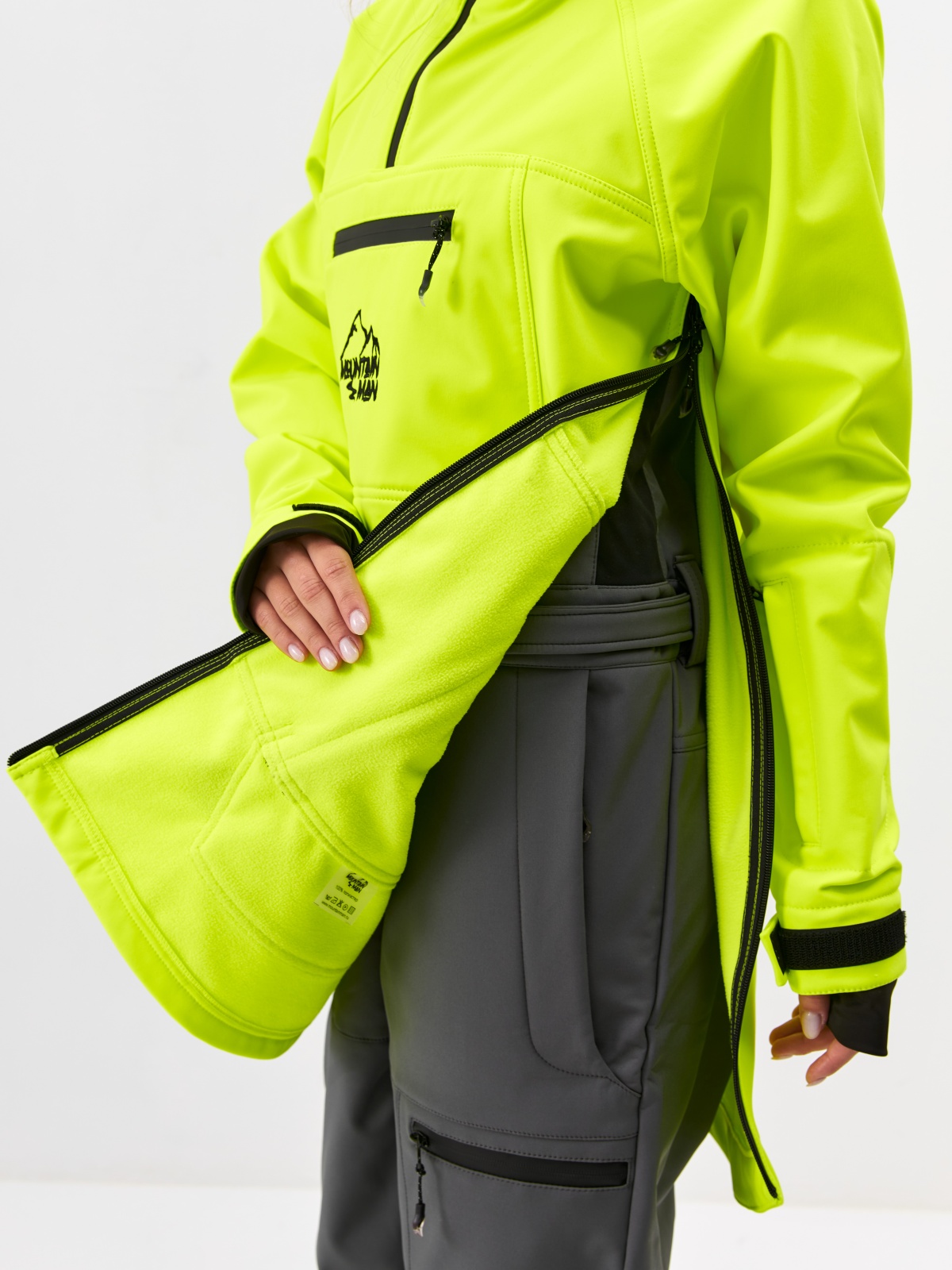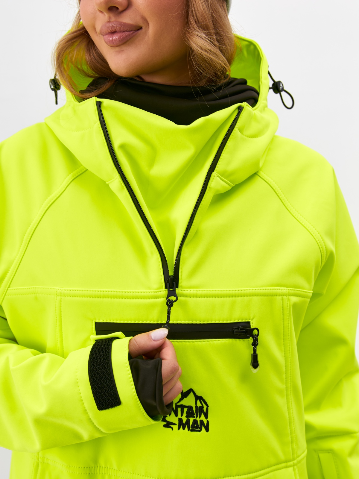 Спортивный анорак унисекс свободного кроя от MOUNTAIN MAN, производится в России. Анорак выполнен из профессиональной мембранной ткани Softshell - хит весна/лето2022