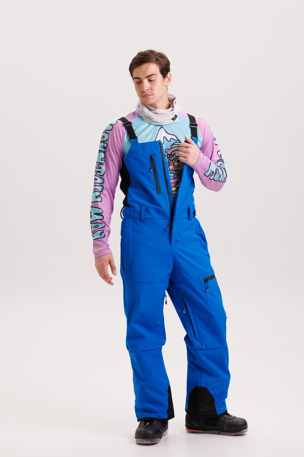 • Гейтеры с силиконовой фиксацией — удерживают полукомбинезон на ботинках и не пропускают снег.