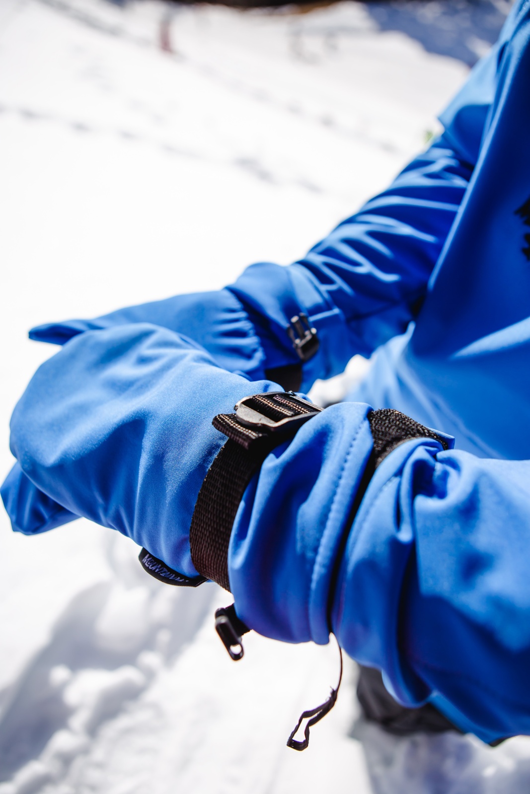 • Резинка и стропа на запястье: препятствуют попаданию снега внутрь варежек, обеспечивая дополнительную защиту.