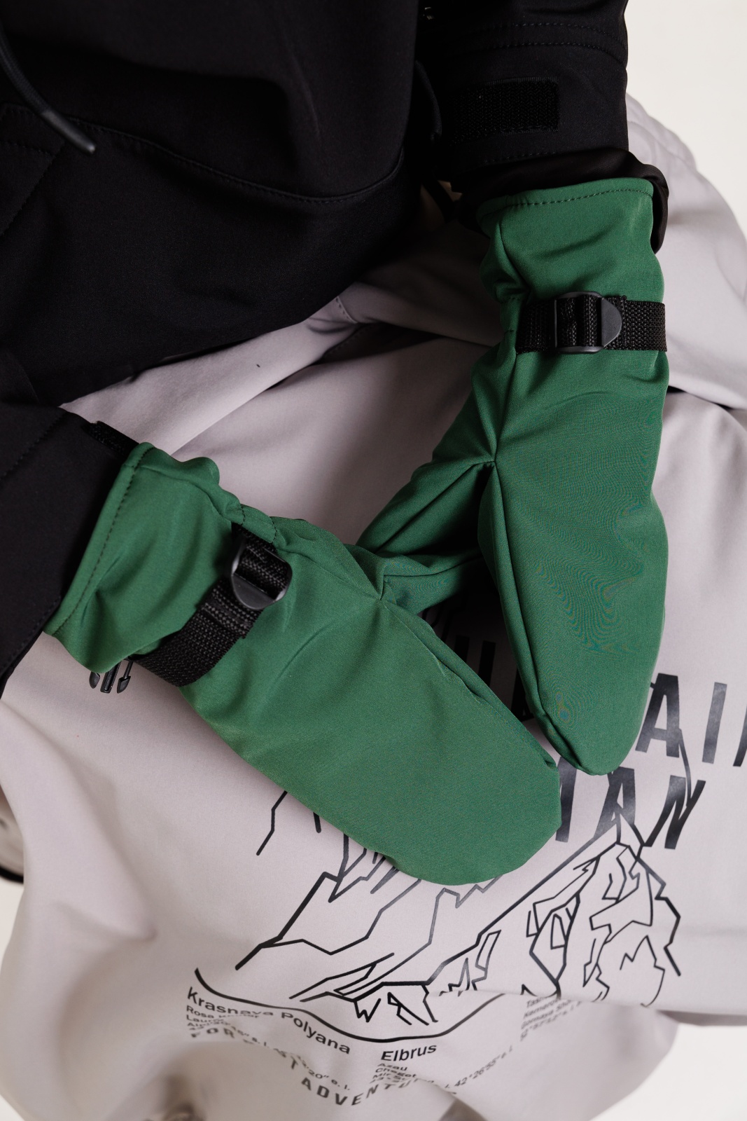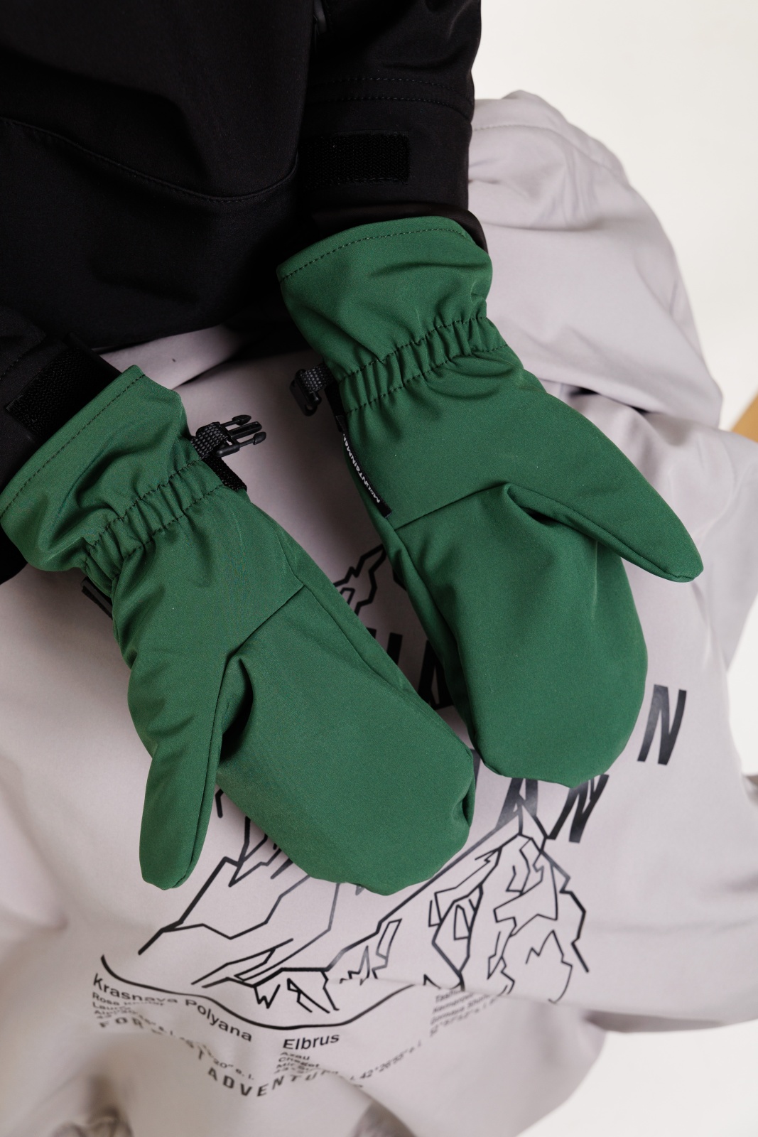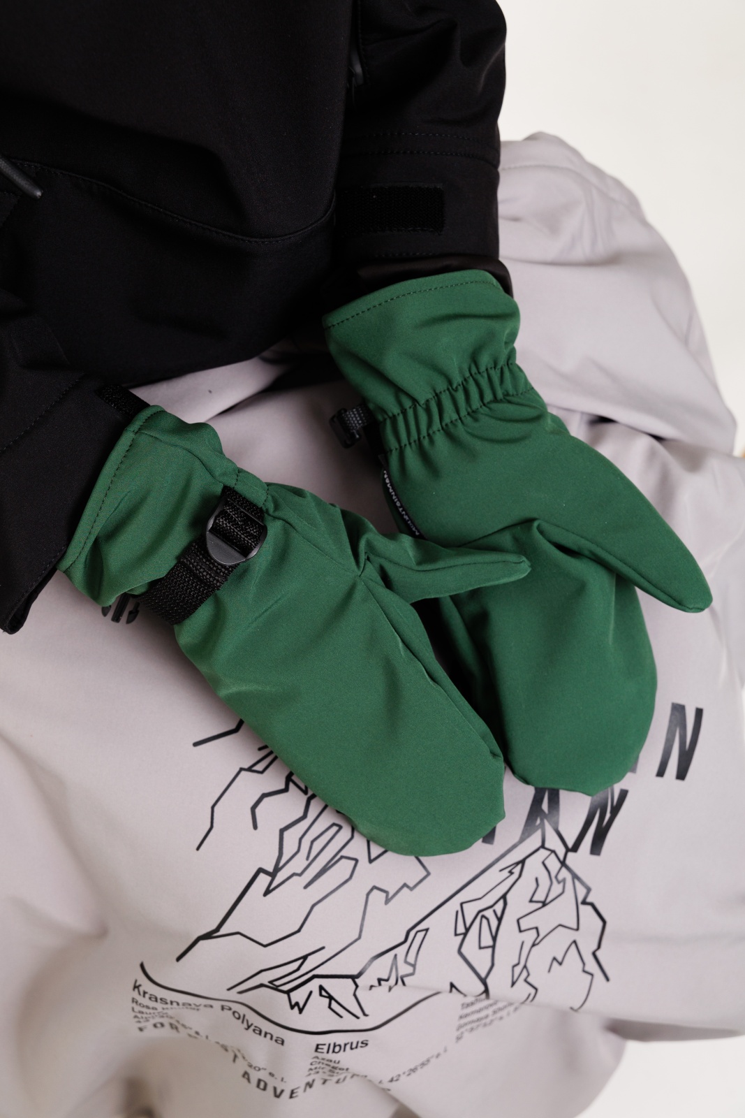 • Резинка и стропа на запястье: препятствуют попаданию снега внутрь варежек, обеспечивая дополнительную защиту.